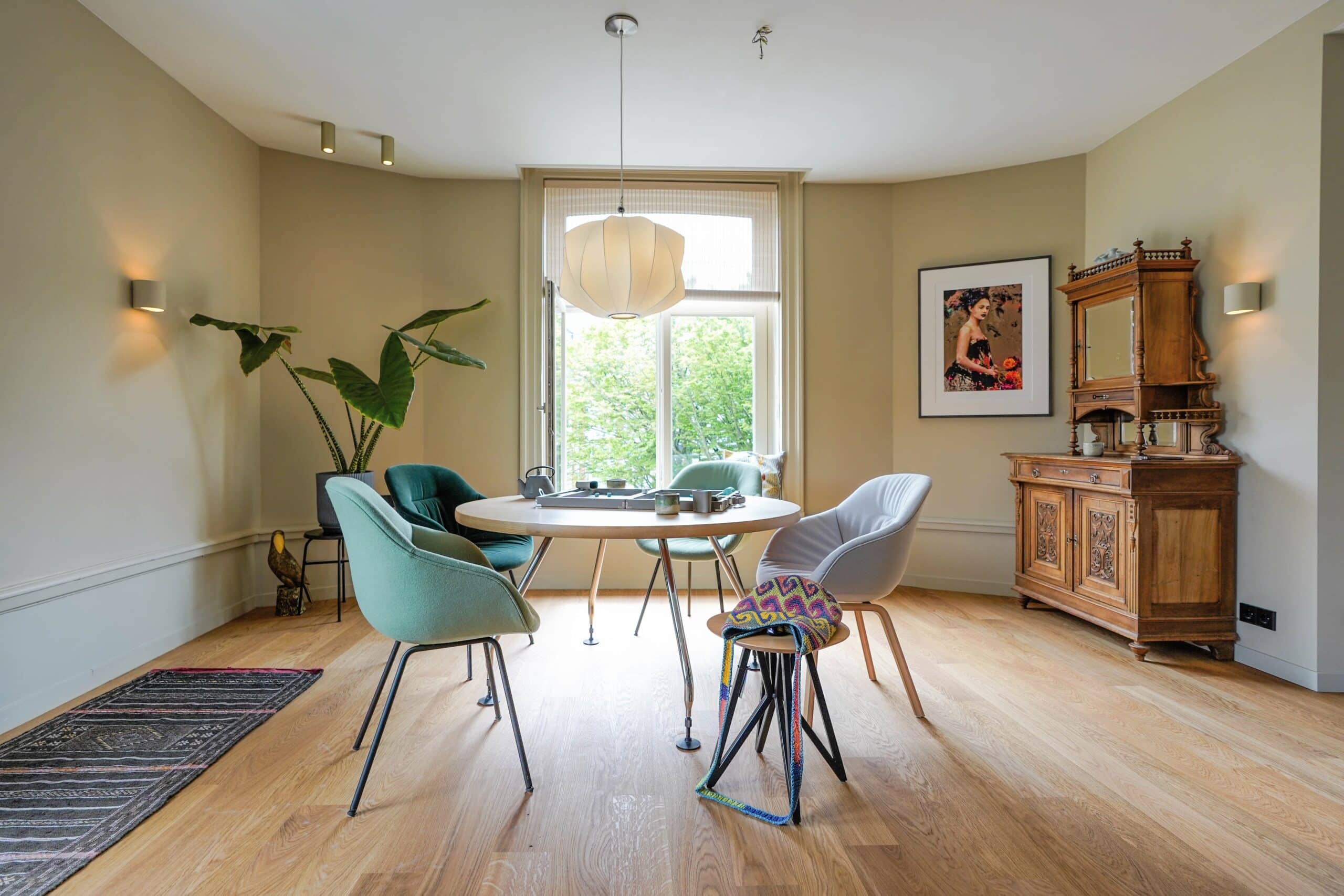 Een behaaglijk licht appartement door de enorme glazen achterzijde kijk je over de stadstuinen van het zeeheldenkwartier.